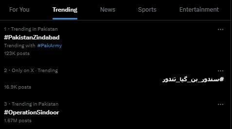 ایسے میں جہاں بھارت میں خوف کا ماحول ہے، وہیں دوسری جانب پاکستانیوں کی مستیاں ختم نہیں ہو رہیں۔ پاکستانیوں نے ”ایکس“ پر ”پاکستان زندہ باد“ اور ”سندور بن گیا تندور“ کو ٹرینڈ بنا ڈالا۔