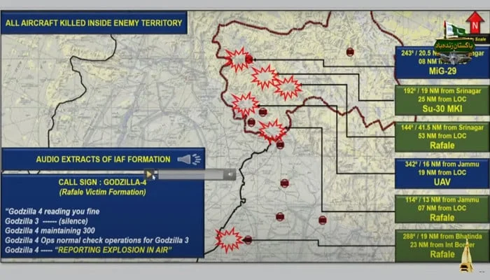 ائیر وائس مارشل اورنگزیب احمد نے رافیل طیاروں کے بھارتی پائلٹس کی انٹرسیپٹ کی گئی گفتگو بھی سنائی۔