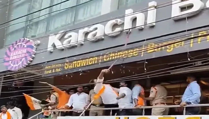 بھارتی شدت پسند اب پاکستان کے شہروں کے نام سے بھی خوفزدہ ہونے لگے، بھارتی شہر حیدرآباد میں کراچی بیکری پر بھارتیہ جنتا پارٹی (بی جے پی) کے انتہا پسندوں نے حملہ کردیا۔