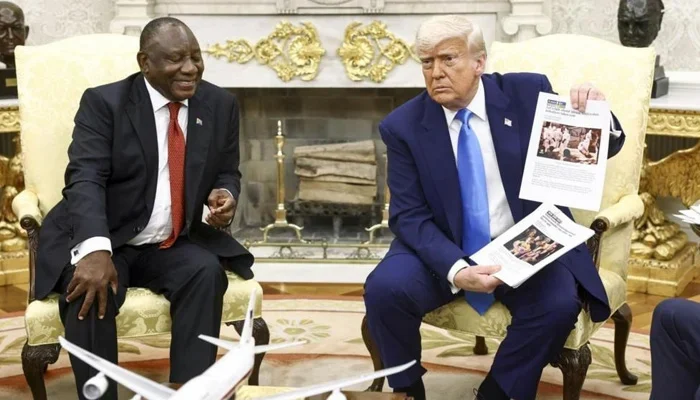 جنوبی افریقہ کے صدر رامافوسا نے اوول آفس میں صدر ڈونلڈ ٹرمپ سے ملاقات کی جس میں امریکی صدر نے مہمان پر سفید فام افراد کی نسل کشی کا الزام لگایا۔