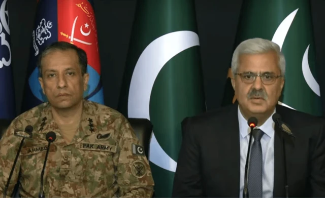 جمعہ کی دوپہر ڈی جی آئی ایس پی آر لیفٹیننٹ جنرل احمد شریف چودھری نے وفاقی سیکریٹری داخلہ خرم آغا کے ہمراہ ایک مشترکہ پریس کانفرنس سے خطاب کرتے ہوئے یہ الزام بھی عائد کیا انڈیا گذشتہ 20 برسوں سے ریاستی دہشت گردی کی پالیسی اختیار کیے ہوئے ہے۔