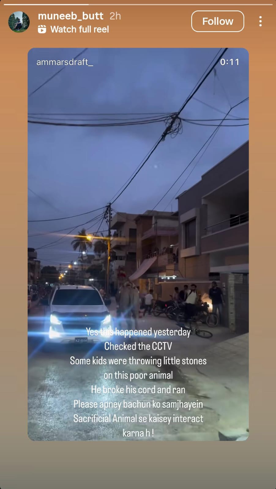 اداکار نے والدین سے اپیل کی کہ وہ بچوں کو یہ سکھائیں کہ قربانی کے جانوروں سے حسنِ سلوک سے پیش آنا چاہیے