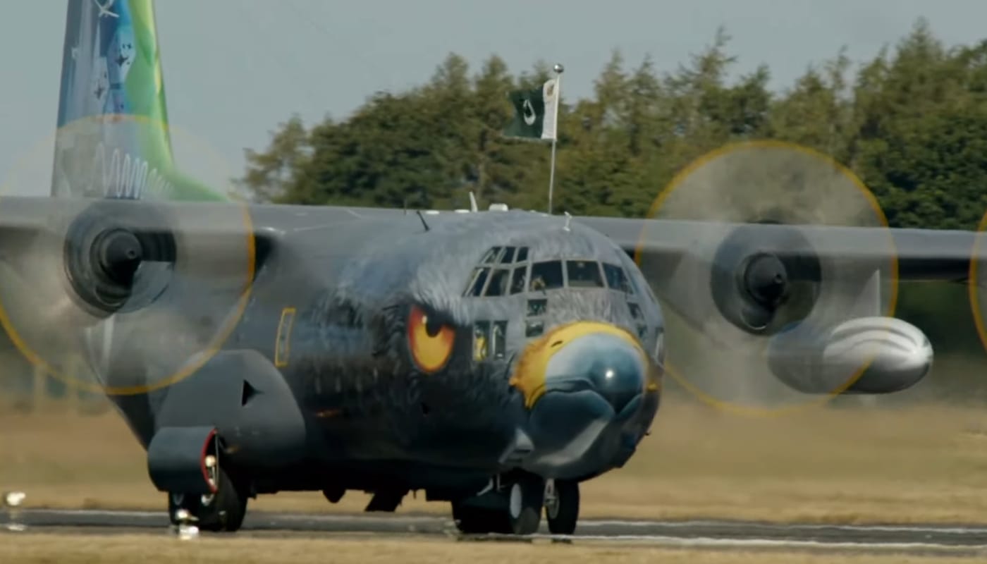 پاک فضائیہ کا سی 130 طیارہ ائیر شو کے لیے پہنچنے والے ابتدائی طیاروں میں شامل تھا، طیارے کے اگلے حصے پر شاہین کو پینٹ کیا گیا ہے جبکہ طیارے کی دم پر پاک فضائیہ کے مختلف طیارے اور ڈرونز پینٹ کیے گئے ہیں۔