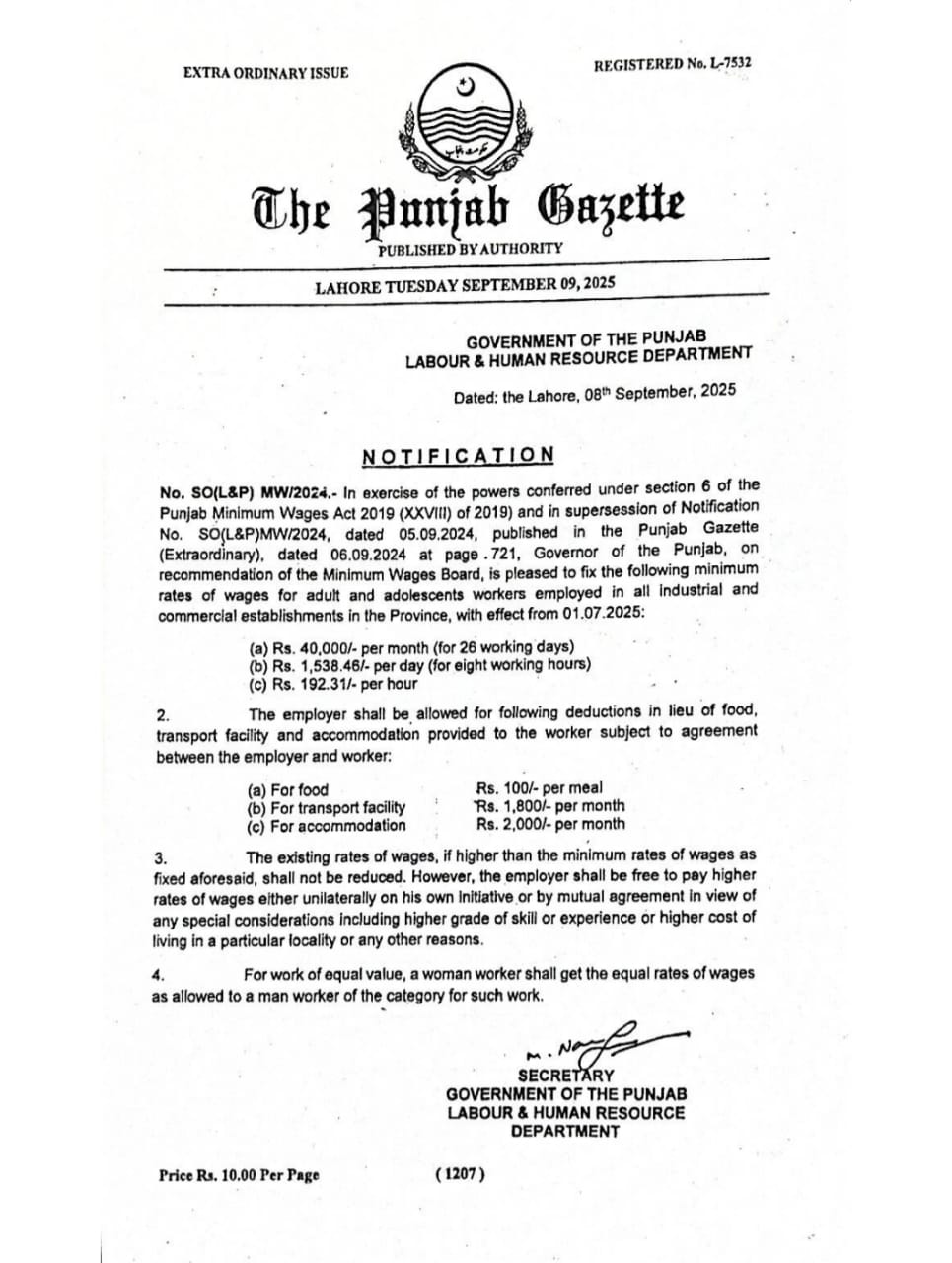 پنجاب حکومت کا تاریخی فیصلہ مزدوروں کی کم ازکم اجرت 40 ہزار روپے مقرر