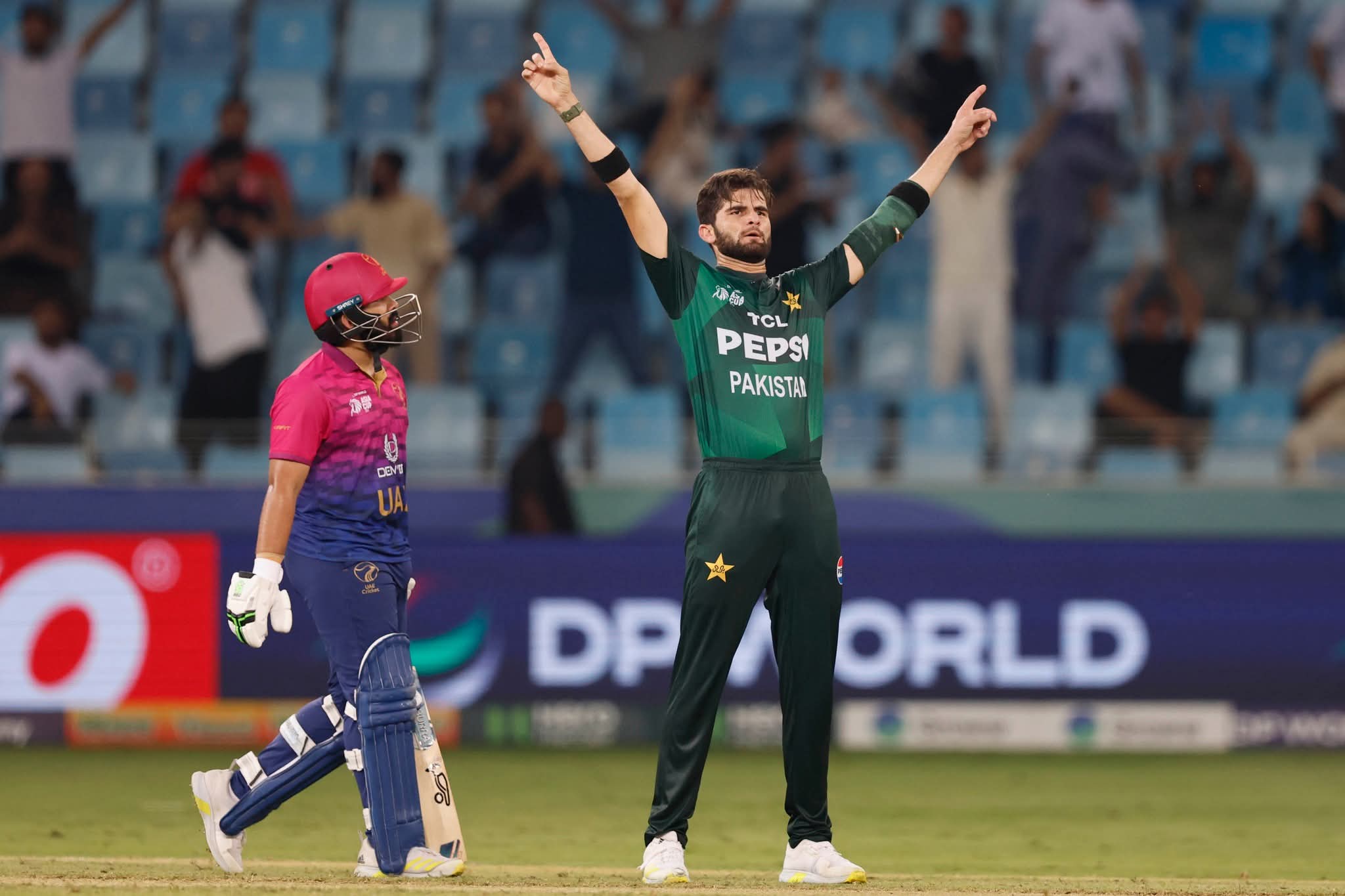یو اے ای کے اوپنر علیشان شرافو 12 رنز بناکر شاہین آفریدی کی گیند پر آؤٹ ہوئے۔