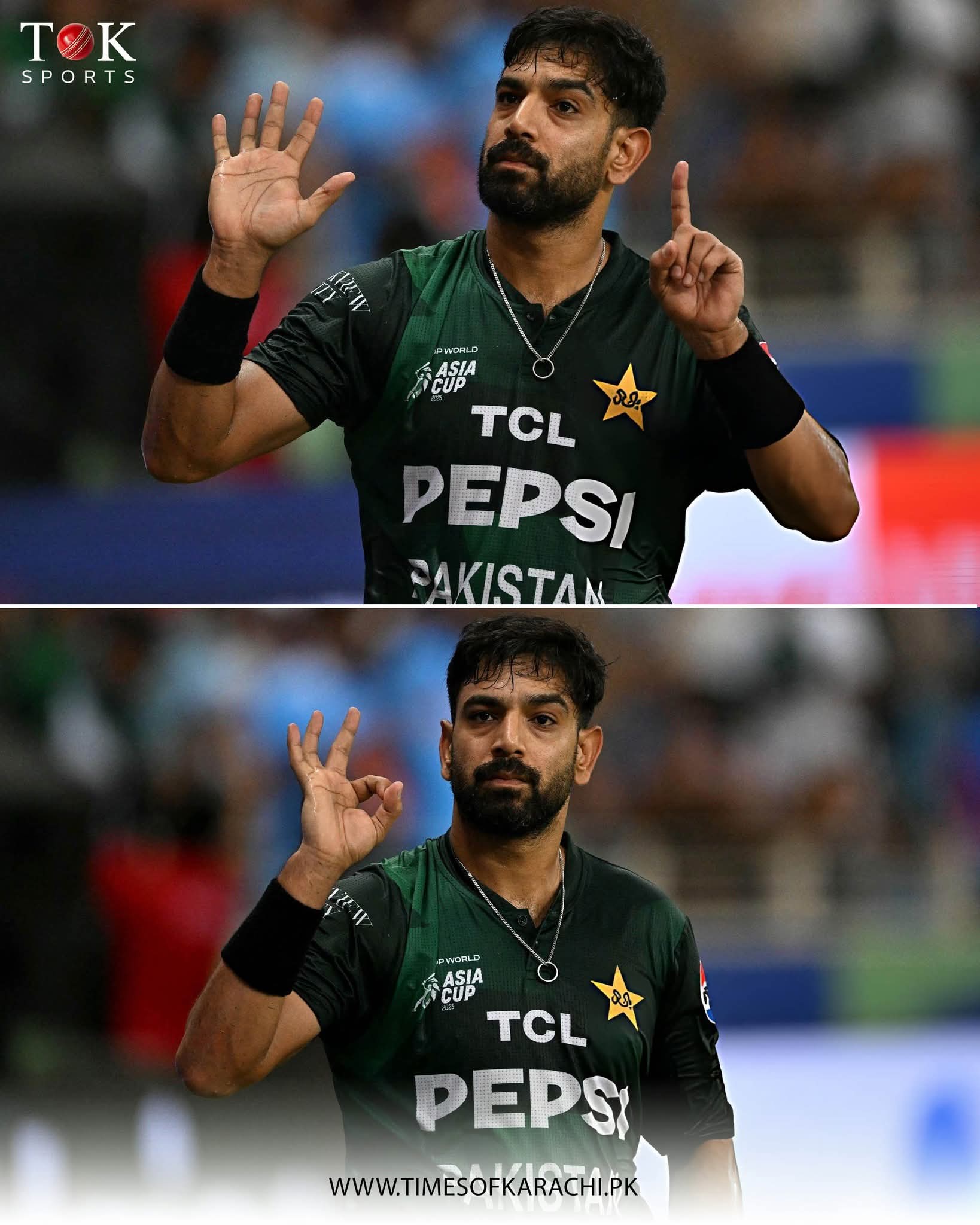 حارث نے پاک بھارت حالیہ جنگ میں انڈیا کی دھلائی کی یادہانی کرواتے ہوئے اپنے ہاتھ کی انگلیوں سے 0-6 کا اشارہ بنایا اور پھر ہاتھ کو ہوائی جہاز کی مانند اُڑا کر اسے نیچے گرتے ہوئے دکھایا ۔