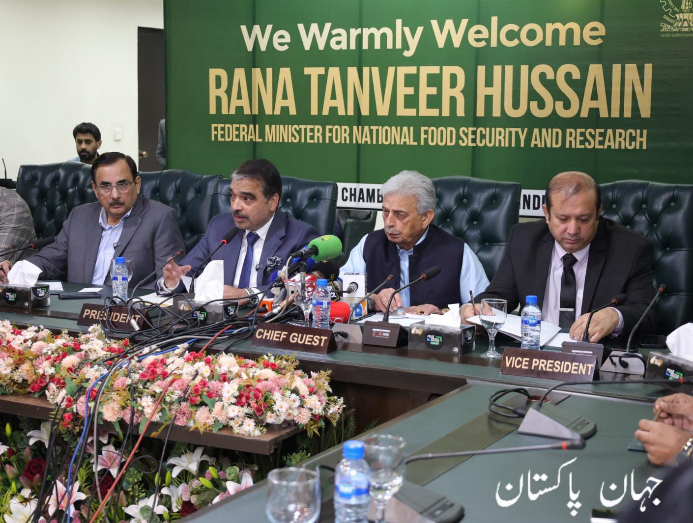 ان خیالات کا اظہار وفاقی وزیر برائے نیشنل فوڈ سیکیورٹی اینڈ ریسرچ رانا تنویر حسین نے لاہور چیمبر آف کامرس اینڈ انڈسٹری میں خطاب کے دوران کیا۔ اس موقع پر صدر لاہور چیمبر فہیم الرحمٰن سہگل، نائب صدر خرم لودھی، نائب صدر سارک چیمبر میاں انجم نثار سمیت سابق صدر محمد علی میاں اور ایگزیکٹیو کمیٹی ممبران بھی موجود تھے۔