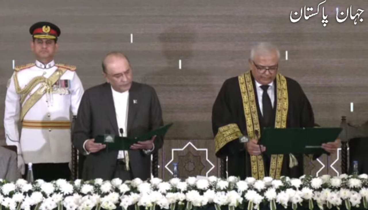 صدر پاکستان آصف علی زرداری نے جسٹس امین الدین سے عہدے کا حلف لیا، تقریب میں وزیراعظم شہباز شریف، چیف جسٹس سپریم کورٹ جسٹس یحییٰ آفریدی اور وفاقی وزراء بھی شریک تھے۔
