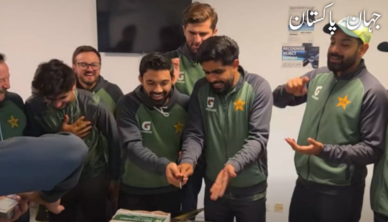 بابر اعظم اور محمد رضوان نے ساتھیوں اور اسٹاف کے ہمراہ کیک کاٹ کر سیلی بریشن کی، جس کی ویڈیو پی سی بی نے اپنے سوشل میڈیا جاری کی ہے
