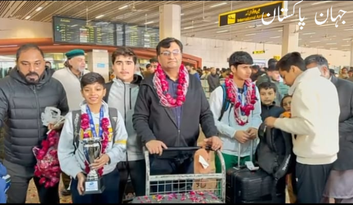 لاپور: چیمپئین کھلاڑیوں کے استقبال کے لیے اہل خانہ اور پنجاب اسکواش ایسوسی ایشن کے عہدیداران موجود تھے