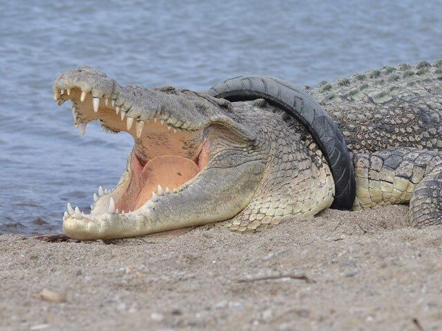 جزیرے سیلاوسی میں 13فٹ سے زائد لمبے مگرمچھ کے گلے میں 6سال قبل ایک ٹائر پھنس گیا تھا۔ جانوروں سے متعلق تنظیموں اور مقامی افراد نے متعدد بار مگرمچھ کے گلے سے ٹائر نکالنے کی کوششیں کیں لیکن ناکام رہے۔