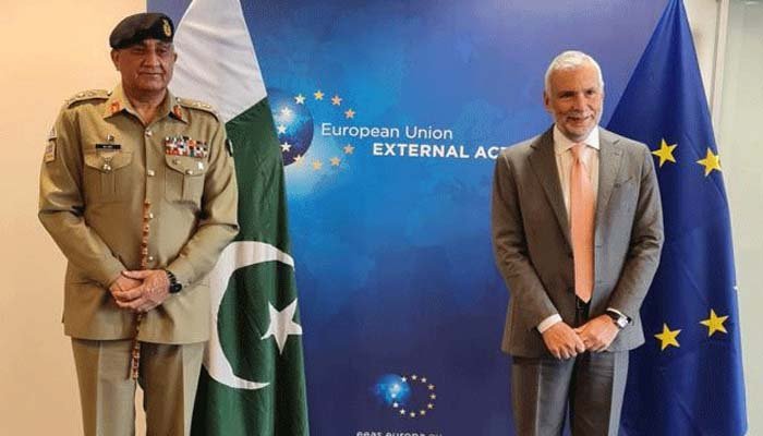 پاک فوج کے شعبہ تعلقات عامہ (آئی ایس پی آر) کے مطابق ملاقات میں افغانستان کی موجودہ صورتحال اور یورپی یونین کے ساتھ باہمی تعلقات پر بھی گفتگو ہوئی۔