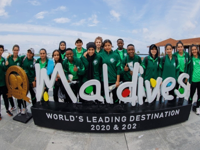 ٹیم مالدیپ پہنچ چکی ہے، 20فروری کو پہلا ٹاکرا سیشیلز سے ہوگا اور چوبیس فروری کو سعودی ٹیم مالدیپ کی خاتون فٹبال ٹیم سے ٹکرائے گی۔