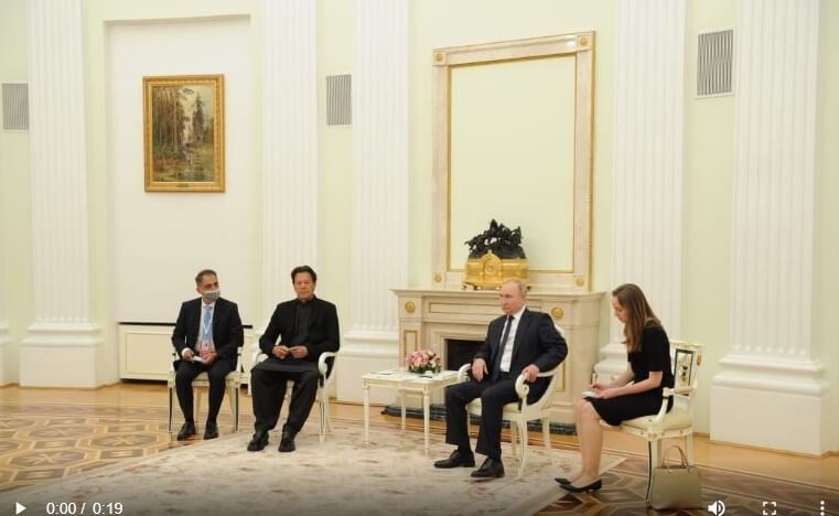 ماسکو میں روسی صدر ولادی میر پیوٹن اور پاکستان کے وزیراعظم عمران خان کی تاریخی ملاقات ہوئی۔ اس موقع پر دونوں رہنماؤں نے خوشگوار انداز میں مصافحہ کیا۔