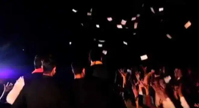 گوجرانوالہ ميں شادی کی انوکھی تقريب ميں ڈالر، یورو اور پاکستانی کرنسی کی بارش کردی گئی۔ دلہے کے دوست اورعزیز کپڑے اور گھڑیاں بھی نچھاور کرتے رہے۔ شادی کی ويڈيو سوشل ميڈيا پر وائرل ہوگئی جس ميں ديکھا جاسکتا ہے کہ