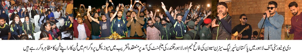 پی ایس ایل سیزن 7 کی فاتح ٹیم لاہور قلندر کی ٹیم منیجمنٹ کے اعزاز میںمنعقدہ تقریب گذشتہ روز دی یونیورسٹی آف لاہور مین کیمپس میں ہوئی۔