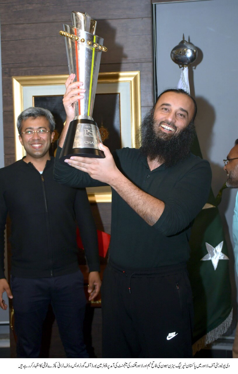 بعد ازاں دی یونیورسٹی آف لاہور کی انتظامیہ کی جانب سے اس موقع پر ٹرافی کی نمائش کی گئی، لاہور قلندرز کی روایت کو برقرار رکھتے ہوئے دستار بندی بھی کی گئی۔