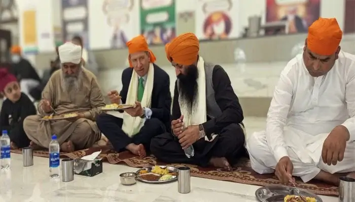 برطانوی ہائی کمشنر نے لنگر صاحب میں یاتریوں میں لنگر تقسیم اور خود بھی کھایا۔