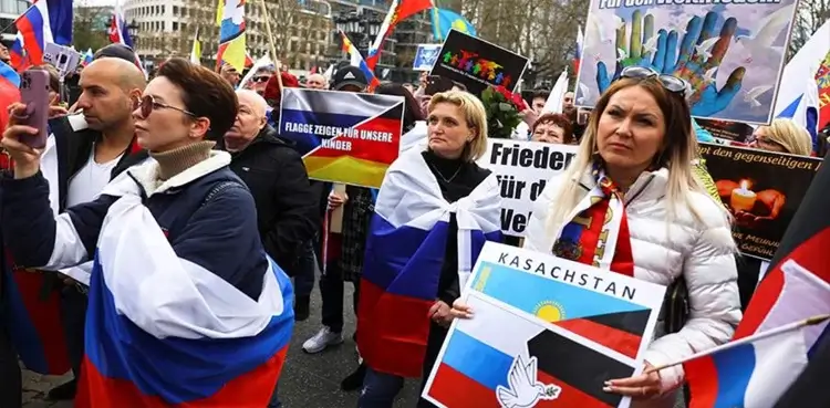 اس کے علاوہ5 مارچ کو برلن میں بھی روسی بولنے والے شہریوں کی حمایت میں ایک اجتماعی ریلی کا اہتمام کیا گیا۔ شہر کے وسط میں واقع چوک میں 300 سے زیادہ لوگ جمع تھے۔