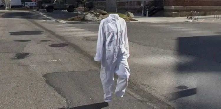 اگر آپ نیو یارک سٹی میں بروکلین نیوی یارڈ کے لیے نیچے جاتے ہیں تو آپ کو خطرناک مواد سے بھرے پورے باڈی سوٹ کا ایک عجیب منظر نظر آئے گا جو سڑک کے بیچ میں کھڑا ہے جس کے اندر کوئی جسم نہیں ہے۔