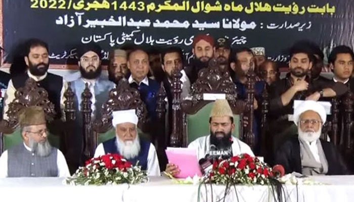 مولانا عبدالخبیر نے مرکزی رویت ہلال کمیٹی کے ارکان کی موجودگی میں اعلان کیا کہ ملک بھر میں مطلع بالکل صاف تھا، ماہ شوال کا چاند کہیں بھی نظر نہیں آیا۔