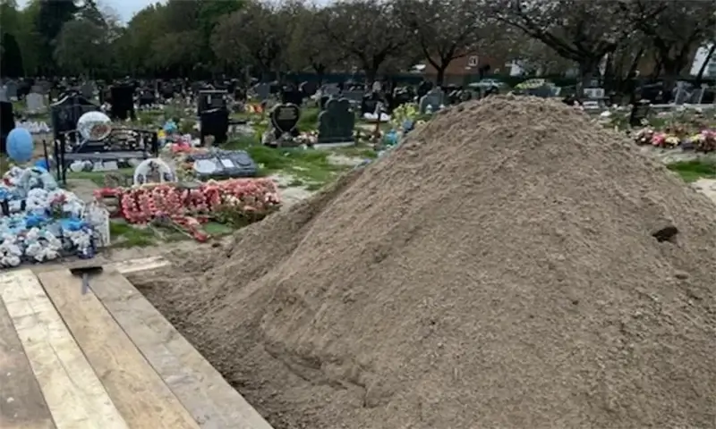 برطانیہ میں شوہر کی قبر پر سالگرہ منانے کے لیے پہنچنے والی بیوی کے اس وقت ہوش اڑ گئے جب انہوں نے قبر کی صورتحال دیکھی جو مٹی کے ٹیلے میں تبدیلی ہو چکی تھی۔