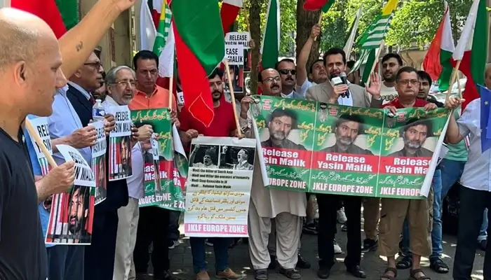 جموں کشمیر لبریشن فرنٹ (جے کے ایل ایف) یورپ زون کے زیر اہتمام بدنام زمانہ بھارتی تہاڑ جیل میں قید تنہائی میں موجود چئیرمین یاسین ملک کی فوری رہائی کیلئے آج برسلز کے بھارتی سفارت خانے کے سامنے مظاہرہ کیا گیا۔