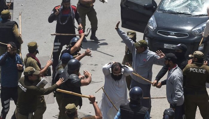 ذرائع کے مطابق پی ٹی آئی کارکنان کے پتھراؤ سے پولیس اور رینجرز کے 7 جوان زخمی ہوئے ہیں