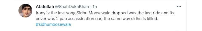سدھو نے 15 مئی کو اپنا آخری گانا لاسٹ رائیڈ یوٹیوب چینل پر جاری کیا تھا، اس گانے کو ایک کروڑ سے زائد لوگوں نے دیکھا۔