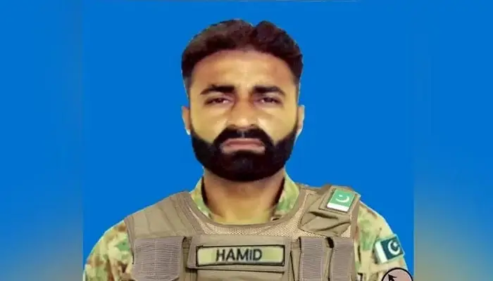 آئی ایس پی آر کے مطابق دہشت گردوں سے فائرنگ کے تبادلے میں ایک سپاہی حامد علی شہید ہوگیا۔