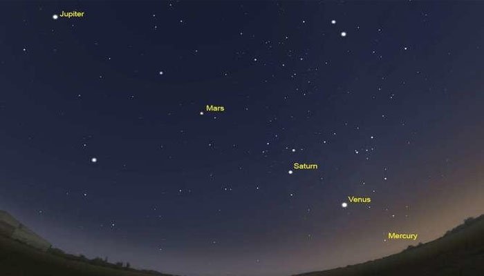 دو یا تین سیاروں کا ایک ساتھ نظر آنا کوئی غیر معمولی بات نہیں لیکن 2004 کے بعد یہ پہلا موقع ہوگا کہ 5 سیاروں کو ایک ساتھ قطار در قطار دیکھا جاسکے گا۔