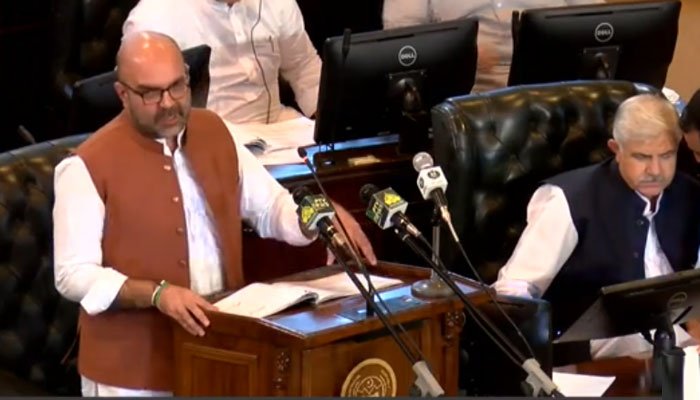 خیبر پختونخوا اسمبلی میں تیمور سلیم جھگڑا بجٹ پیش کر رہے ہیں۔