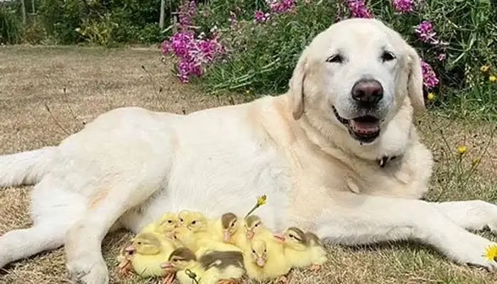 کتے نے بطخ کے 15 یتیم بچےگود لے لیے