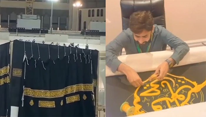 معروف گلوکار ابرار الحق نے اپنے ٹوئٹر اکاؤنٹ پر ایک ویڈیو شیئر کی ہے، جس میں وہ غلافِ کعبہ پر سوئی سے ٹانکے لگاتے نظر آرہے ہیں۔
