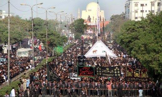 کراچی میں 9 محرم الحرام کا نشتر پارک سے برآمد ہونے والا مرکزی جلوس ایم اے جناح روڈ اور مقررہ راستوں سے ہوتا ہوا حسینیہ ایرانیاں کھارادر پہنچ کر اختتام پذیر ہوا۔