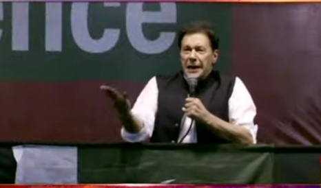 چیئرمین تحریک انصاف عمران خان لاہور کے ہاکی اسٹیڈیم میں جلسے سے خطاب کررہے ہیں۔