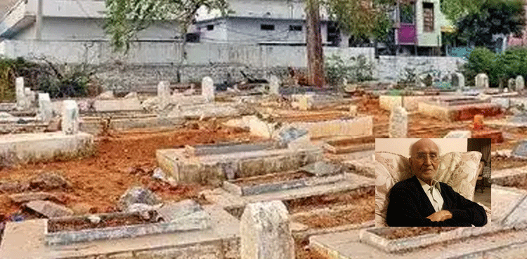 دوسرے دن غروبِ آفتاب سے ذرا دیر پہلے سیدھے حیدرآباد کے پھلیلی قبرستان پہنچے تو کافی انتظار کے بعد قبر آدھی بند کی جا چکی تھی۔ ان کا چہرہ پرسکون تھا۔ زردی نے ماتھے پر سجدے کے نشان کو زیادہ واضح کردیا تھا۔ ایک جھلک دیکھی۔ پھر اس کے بعد کچھ نظرنہ آیا۔