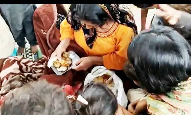 وائرل ویڈیو میں لاڑکانہ کی ماں کو بھوک سے بلکتے بچوں میں روٹی تقسیم کرتے ہوئے دیکھا جا سکتا ہے۔