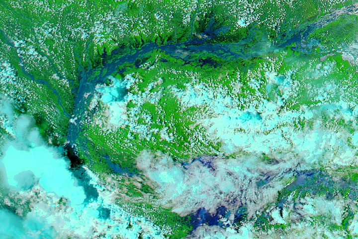 امریکی میڈیا کے مطابق سیٹلائٹ سے لی گئی تصویر میں گہرا نیلا رنگ سیلابی جھیل کی نشاندہی کر رہا ہے جبکہ سیٹلائٹ تصاویر میں شدید بارشوں اور سیلاب سے سندھ کا بڑا حصہ ڈوبا نظر آ رہا ہے۔