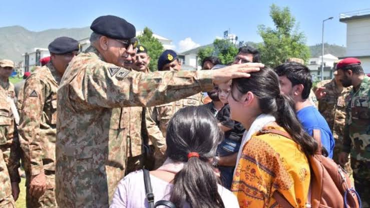آئی ایس پی آر کے مطابق انہوں نے سیلاب متاثرین سے ملاقات اور تفصیلی بات چیت کی۔