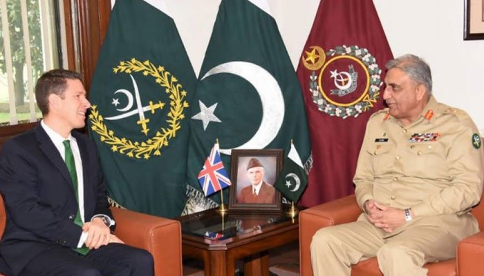 آرمی چیف جنرل قمر جاوید باجوہ سے برطانوی ہائی کمشنر کرسچین ٹرنر نے راولپنڈی میں ملاقات کی ہے۔