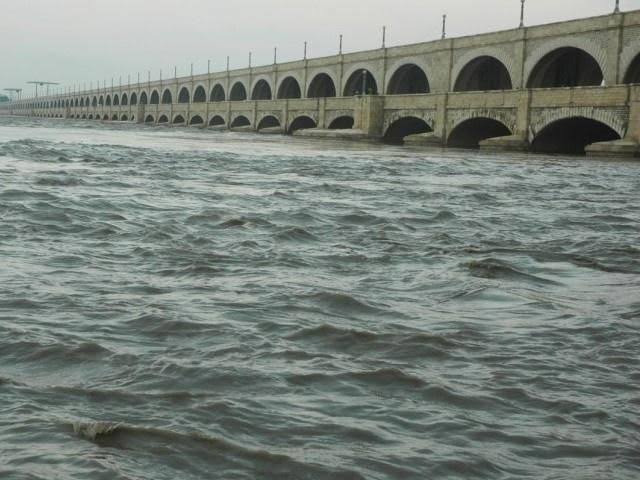 سکھربیراج سے گزرنے والا اونچےدرجےکا سیلابی ریلا کوٹری بیراج کی طرف بڑھ رہا ہے۔
