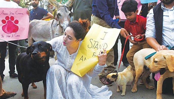 لاہور پریس کلب کے باہر سول سوسائٹی اور دیگر نجی تنظیموں کی جانب سے پالتو جانوروں کے ہمراہ احتجاجی مظاہرہ کیا گیا۔مظاہرین نے ہاتھوں میں پلے کارڈز اٹھا رکھے تھے جن پر جانوروں کے حق میں نعرے درج تھے۔