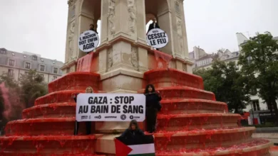 فرانسیسی سماجی کارکنوں نے غزہ میں فلسطینیوں کے قتل عام کی علامت کے طور پر پیرس کے فوارے کو سرخ…