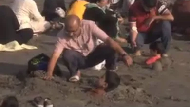 شہر قائد میں سورج گرہن کے موقع پر شہریوں کی بڑی تعداد نے اپنے معذور بچوں کو گیلی مٹی میں…