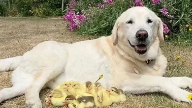 کتے نے بطخ کے 15 یتیم بچےگود لے لیے