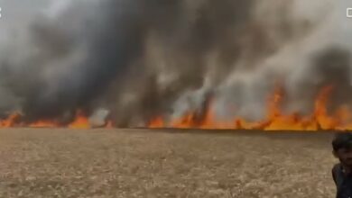انتظامیہ کی غفلت بجلی کا پول شارٹ سرکٹ ہونے کے باعث شیخوپورہ،گاوں باہڑ میں گندم کی تیار فصل کو آگ…