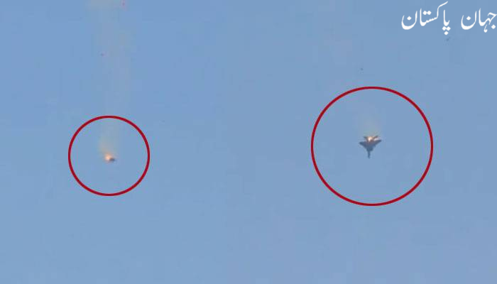 سوشل میڈیا پر وائرل ویڈیو میں گرتے ہوئے ایف 15 طیارے سے آگ کے شعلے نکلتے دیکھے جا سکتے ہیں۔