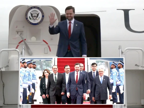 جے ڈی وینس کا طیارہ 10 بجے چترال کے قریب سے پاکستانی فضائی حدود میں داخل ہوا، پاکستان کی فضائی حدود میں ائیر فورس کی جانب سے پرتپاک استقبال کیا گیا اور خصوصی طیارے نے صبح 10:33 بجے نورخان ائیر بیس پر لینڈ کیا