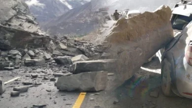 دیامر کی حدود کے کے ایچ کے قریب لینڈ سلائیڈنگ کے باعث کار پر پتھر گرگئے، خوش قسمتی سے کارسوار…